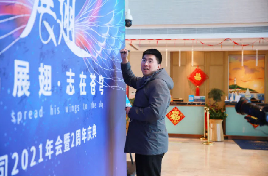2021年2月22日,微程之家旅游小程序“鲲鹏展翅,志在苍穹”主题年会在烟台高新区隆重举行。